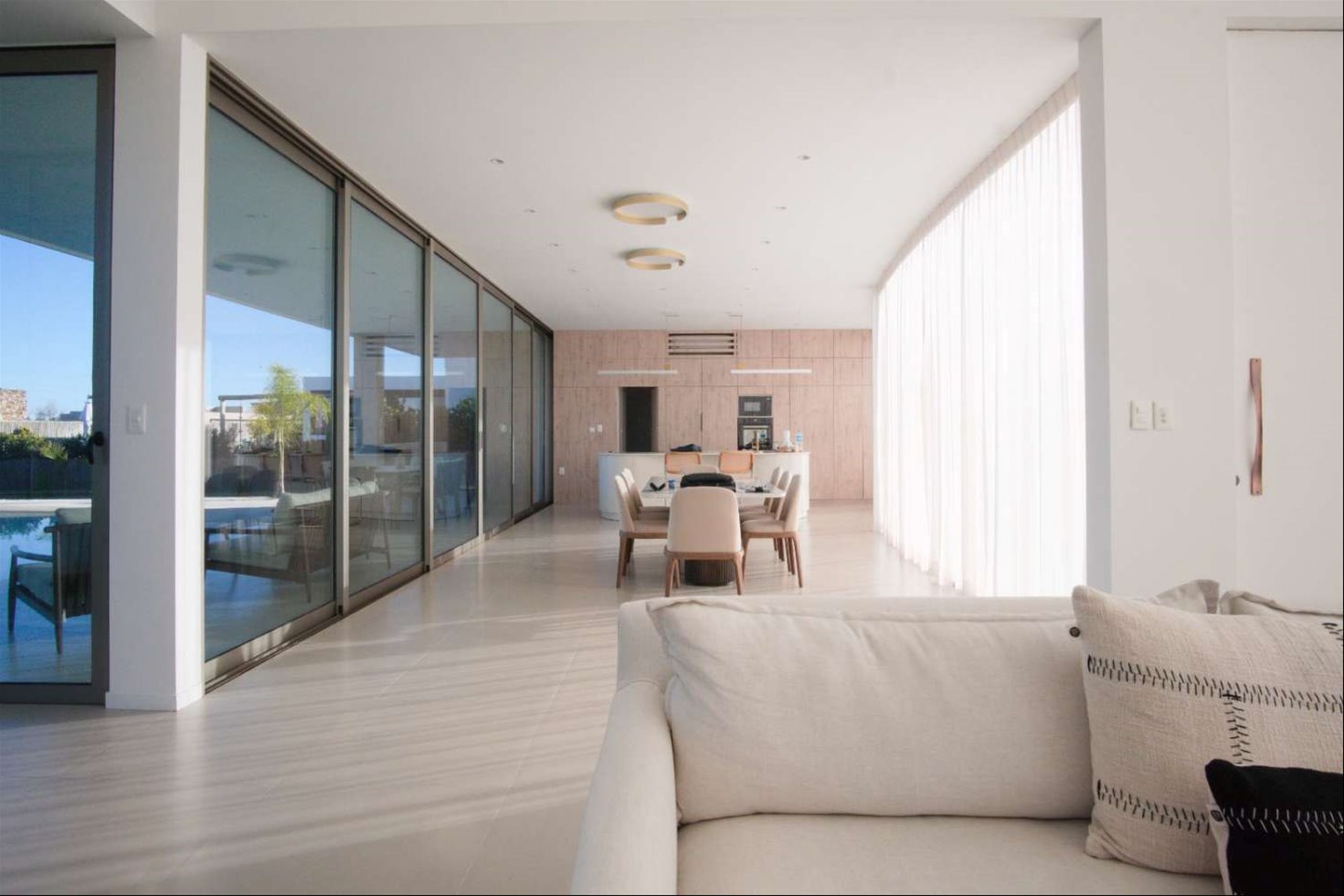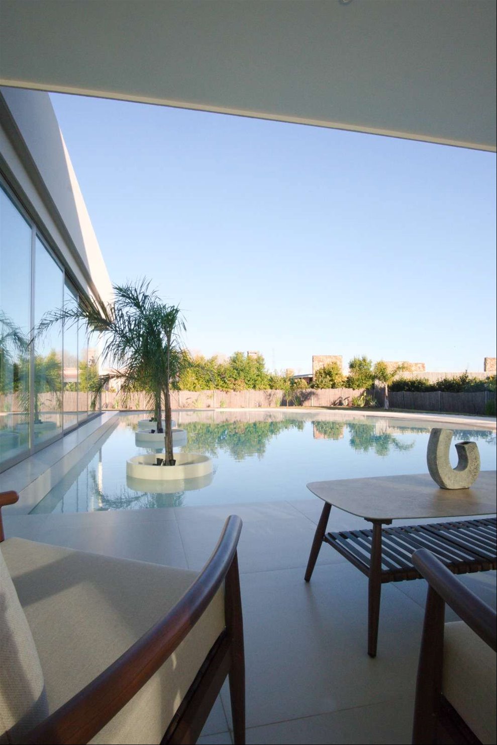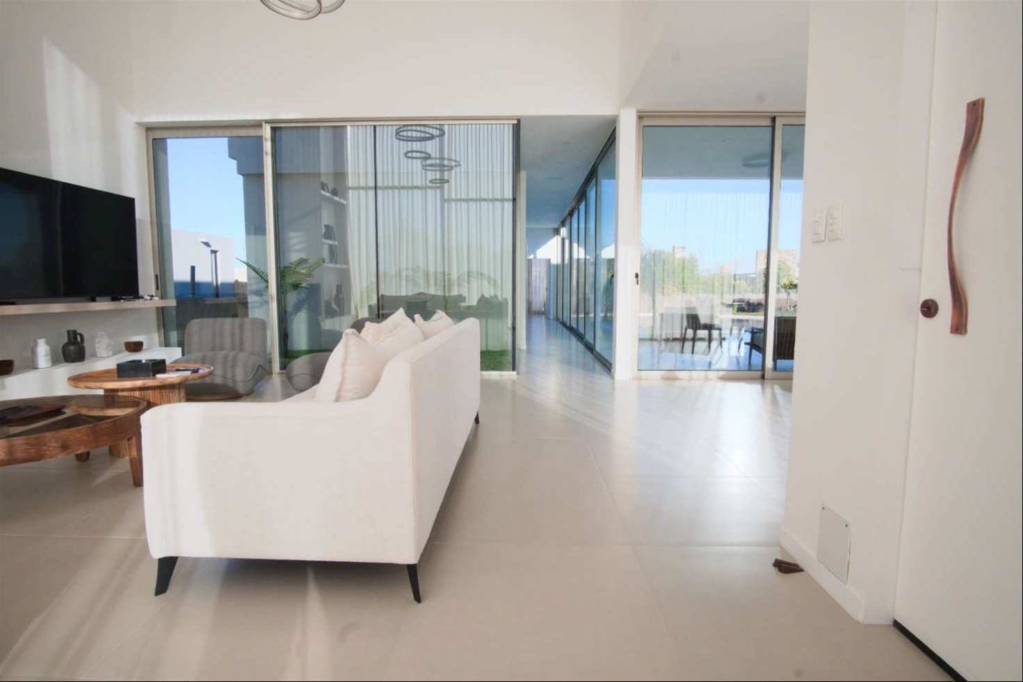 Se trata de una propiedad en construcción tradicional y desarrollada en una planta con techos en doble altura de 3 dormitorios en suite + toliette + servicio completo (o estudio), cocina integrada con gran isla c/horno, anafe y campana, gran living con estufa a leña y ventanales hacia la piscina.