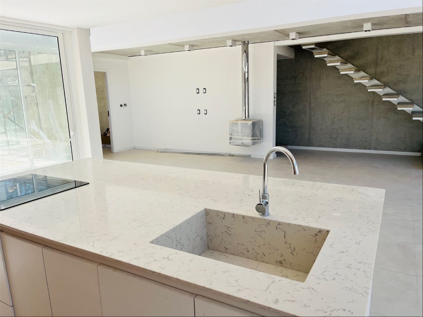 La cocina se encuentra integrada, equipada con isla, horno, anafe y campana extractora.