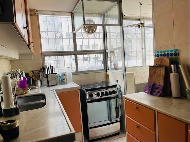 Amplio living comedor con pisos de parquette y salida a balcón al frente, cómoda cocina con buena terraza lavadero y acceso a servicio.