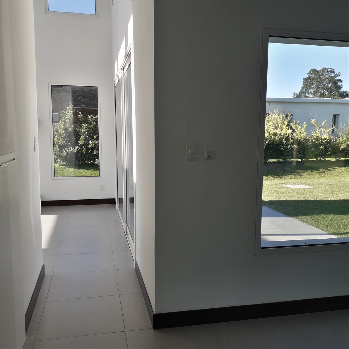 Ésta propiedad cuenta con living con estufa a leña y techos en doble altura, comedor apaisado con vista al jardín, amplia cocina definida con isla, campana, horno y anafe, baño social y servicio completo. Lavadero y zona de tender.